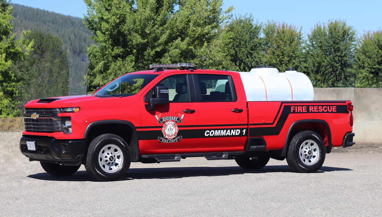 Command 1 – 2024 Chevrolet Silverado 3500 4×4 / Rackustoms wildland skid (Honda GX200 port./220)